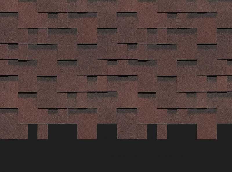 Черепица в глубоких темно-каштановых оттенках отлично подойдет для кровель большой площади и сложной конфигурации. Оригинальность покрытию придает несимметричный перехлест лепестков и выразительный 3D-эффект. Кровля хорошо смотрится с фасадами, выполненными в сливочных, карамельных, фисташковых, терракотовых тонах.