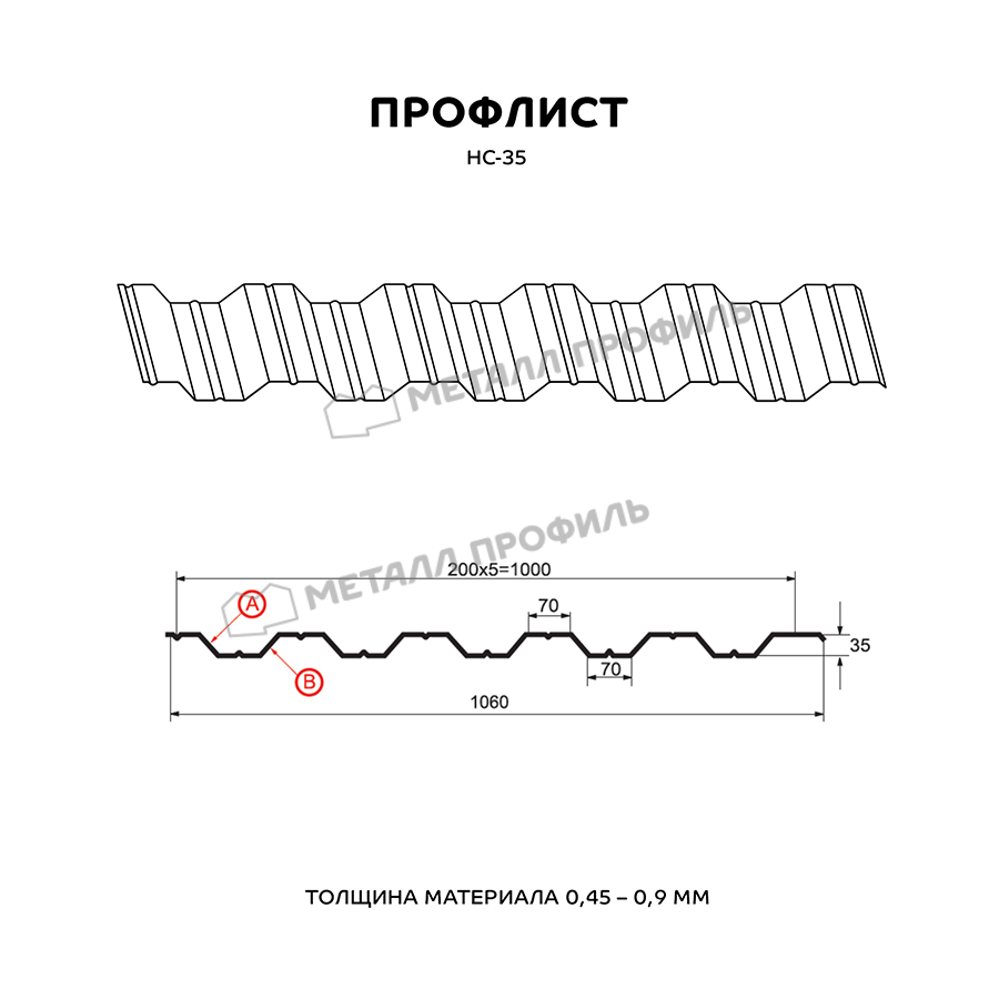 Универсальный и выгодный стройматериал с симметричным профилем. Пометка НС значит, что профлист является и «несущим», и «стеновым». Он пользуется спросом как при строительстве частных домов, так и для промышленных объектов. Из профнастила с высотой гофры в 35 мм получаются строения абсолютно разного назначения: быстровозводимые постройки ( павильоны, навесы ), каркасные здания ( склады, торговые центры, цеха ), ограждения частных и общественных территорий, обустройство кровли. Отличную способность выдерживать нагрузки НС-35 обеспечивают специальные желобки, проходящие с обеих сторон профлиста. Рабочая ширина материала составляет 1000 мм при номинальной ширине 1060 мм, таким образом, при монтаже этого металлопрофиля в боковой замок скроется 60 мм. Толщина металлопроката имеет диапазон от 0,5 до 0,9 мм – это обуславливает не только механическую стойкость профлиста, но и его тяжесть. Полимерный слой из каталога Компани Металл Профиль добавит материалу дополнительную стойкость к ржавению и солнечному излучению.